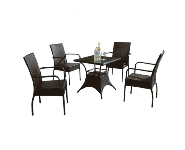 鋼藤休閒方桌椅(深咖啡)