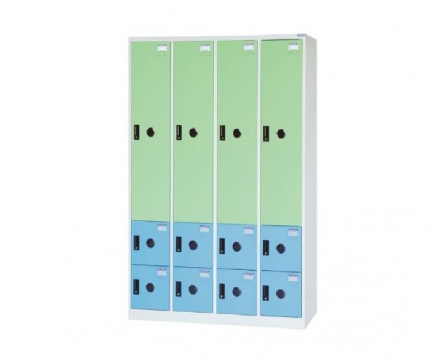 12門雙色置物櫃(藍/綠色)(4大門8小門)